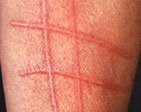 治疗前:背上有许多的红色肿块,剧烈瘙痒,治疗了很长